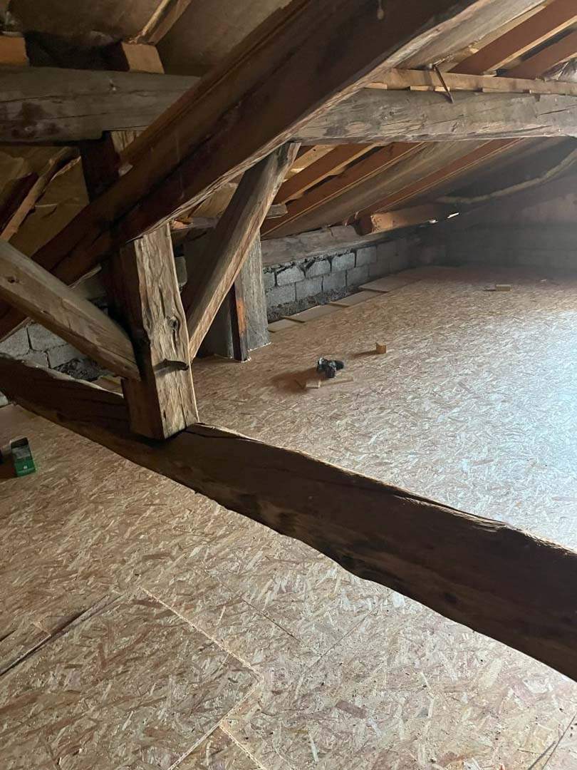 Il a ensuite installé des panneaux OSB afin d'aménager les combles en espace de stockage fonctionnel.