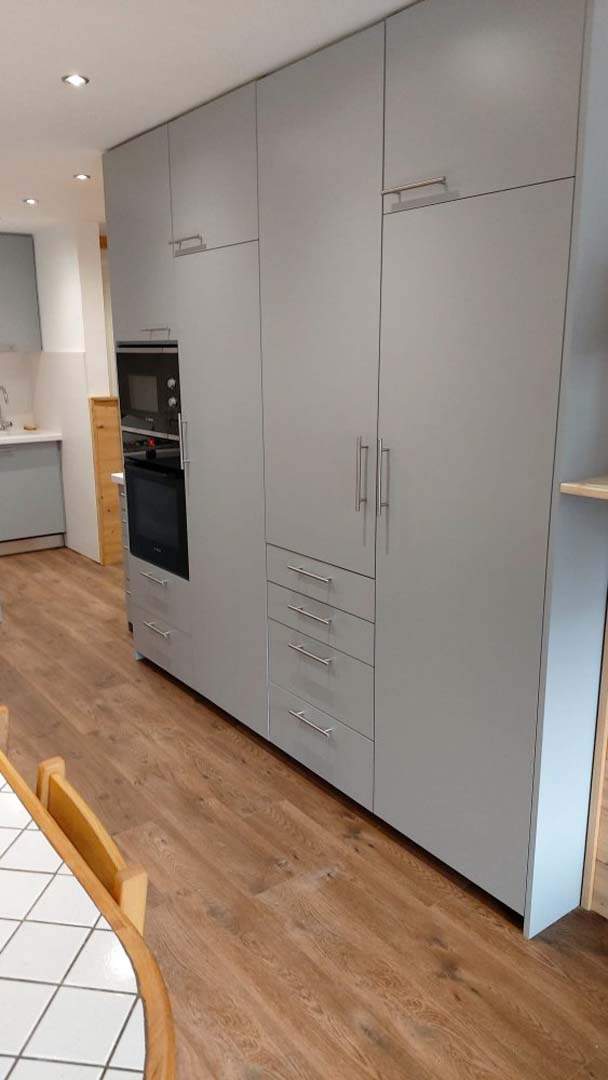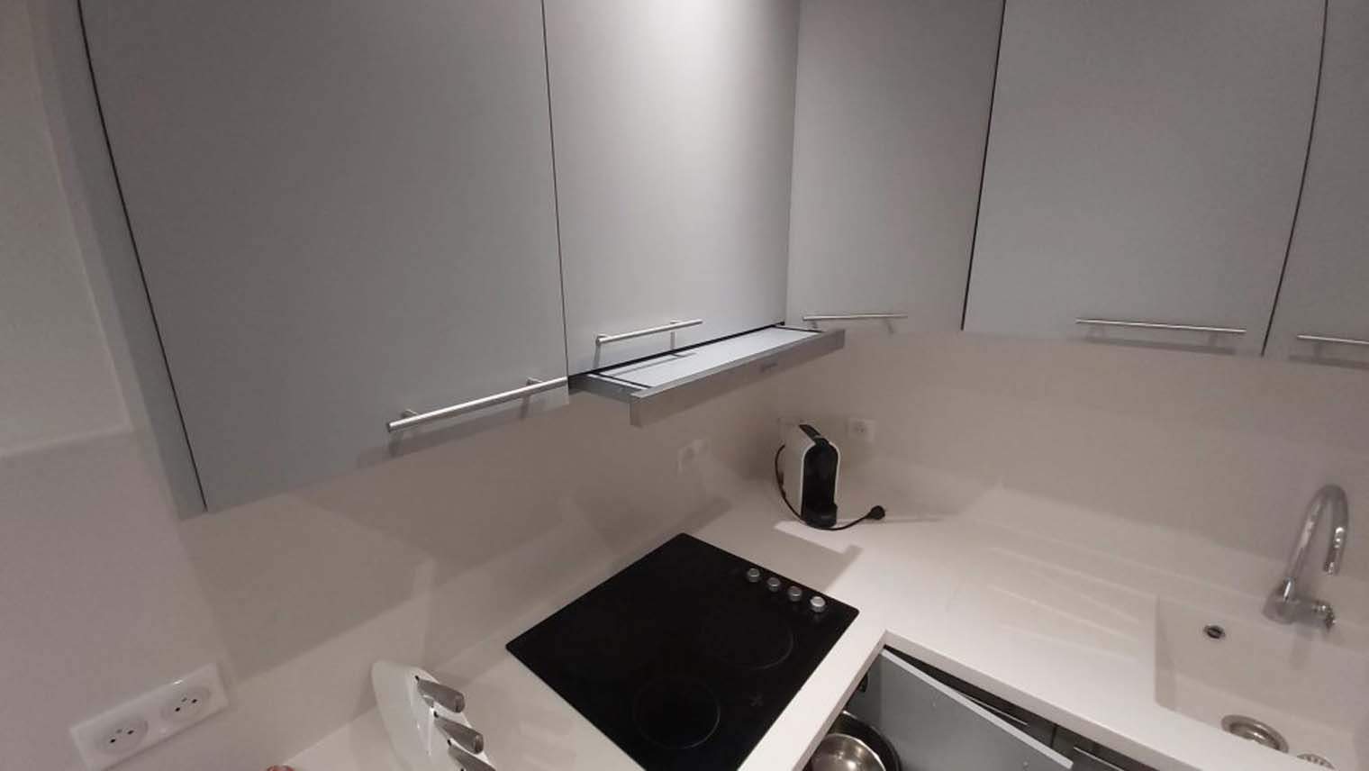 Le plan de travail et la crédence, réalisés sur mesure en surian coloris "blanc plume", intègrent un évier et un égouttoir moulés pour un rendu harmonieux et fonctionnel. Vous souhaitez une cuisine qui allie esthétique, praticité et durabilité ? Votre menuisier Philippe Doucet vous accompagne dans l'étude de votre projet, le choix des matériaux et l'agencement idéal pour créer un espace qui vous ressemble.