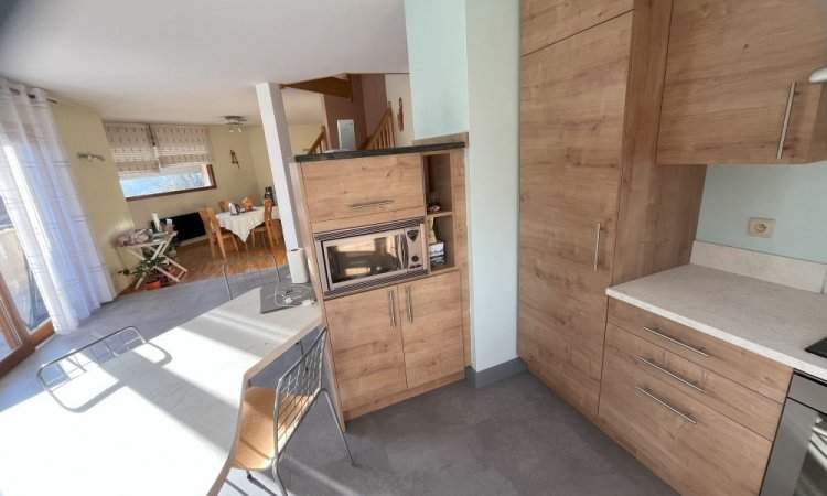 Votre menuisier a conçu, fabriqué sur mesure et installé une cuisine en mélaminé coloris "chêne transversal" à La Plagne Tarentaise.